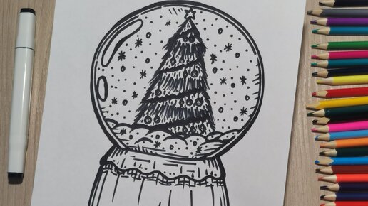 Как нарисовать снежный шар. Новогодняя ёлка. Рисунок для срисовки