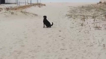 Крымский пёс, бегущий краем моря