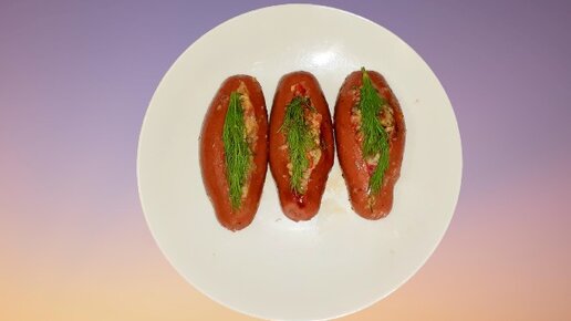 Быстрый завтрак, лодочки из сосисок начиненный яйцом помидором и укропом