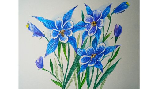 Сине-голубые цветы как нарисовать акварельными карандашами.