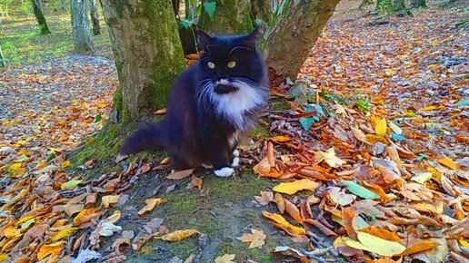 Мы встретили сказочного Булгаковского кота в осеннем горном парке. Бег с препятствиями в лесу