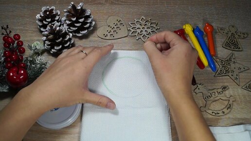 Провожу эксперимент с нанесением на канву рисунка восковыми карандашами