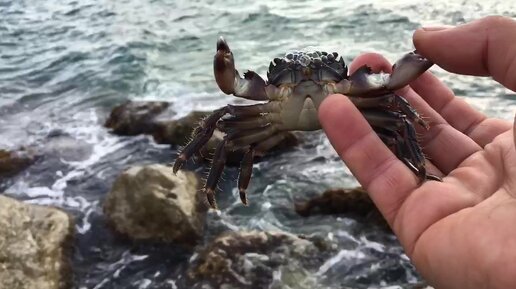 Отпускаю краба на волю. Показываю Черноморского кусачего краба
