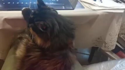 Кошка Буся у мамки на коленях.