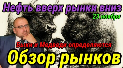 Быки и Медведи определяются. Нефть вверх рынки вниз. Обзор рынка за 23 ноября.