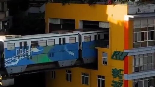 В Китае проектировщики приняли экстремальное решение: построить железную дорогу прямо сквозь здание, между 7 и 8 этажами.
