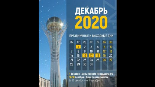 Сколько дней казахстанцы отдохнут в декабре