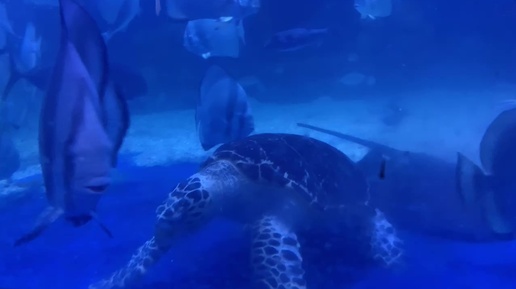 Черепаха ест рыбу. Аквариум в Египте