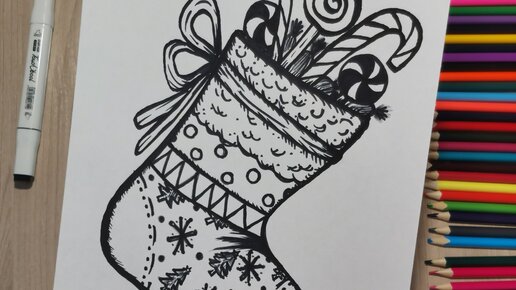Как нарисовать носок для подарков. Новогодние рисунки