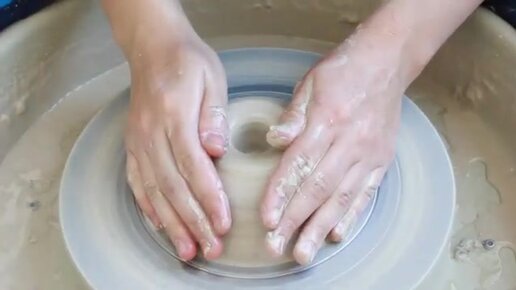 Центрование глины за гончарным кругом. Формирование цилиндра из глины за гончарным кругом
