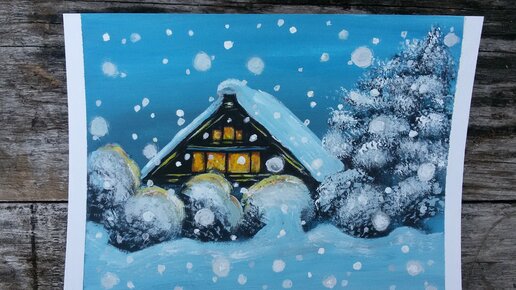 Такую снежную картину"Зима" рисовать гуашью одно удовольствие
