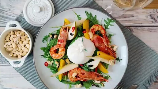 Рецепты к новогоднему столу: теплый салат с лангустинами, бураттой и грушей