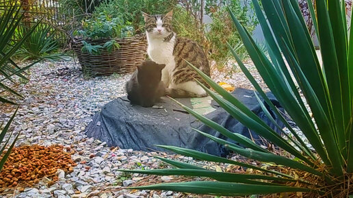 Посмотрите, какой у нас здесь Сад Котов! Завтрак у моих любимцев