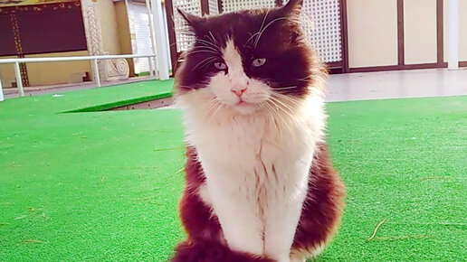 Показываю, какого я встретила большого, пушистого кота. Жалуется, что все туристы уехали.