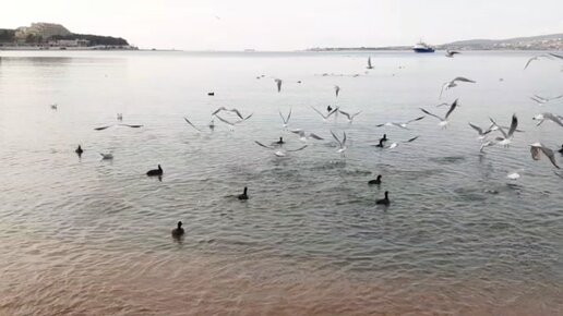 Всё смешалось: чайки, утки, собаки, люди... И получилось очень красиво!