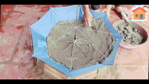 Отличный фонтан из зонтика. Мастер цементного дела знает в этом толк.