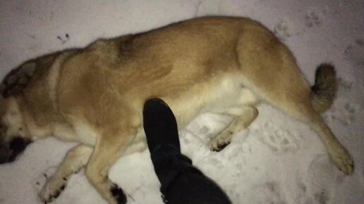 Дворовая собака Найда пузо подставляет почесать.