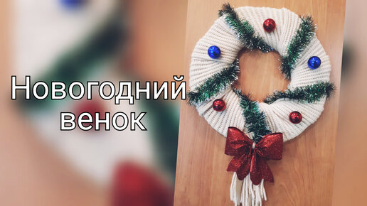 Делаем уютный рождественский венок из старого шарфа.