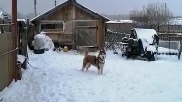 Хаски смешно охраняет дворик и зовет маму, на конец то нам стало безопасно