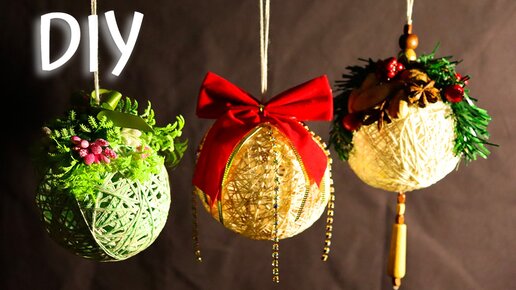 DIY Ёлочные шары из ниток. ПРОСТО И КРАСИВО 3 ВИДА ДЕКОРА