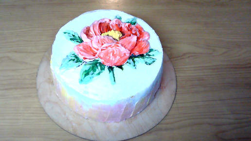 Украшение домашнего торта. Мой первый опыт рисования цветов кремом.