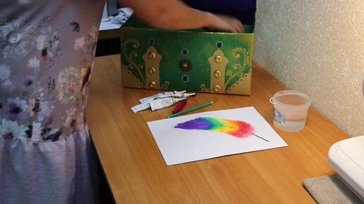 Радужное перо | Мастер класс по рисунку акриловыми красками