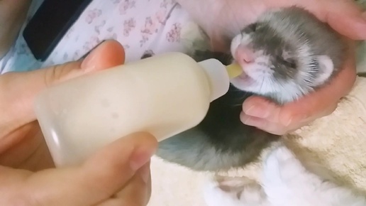 Хорек малыш кушает молочко из соски