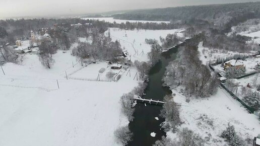 Полет на коптере над фермой.