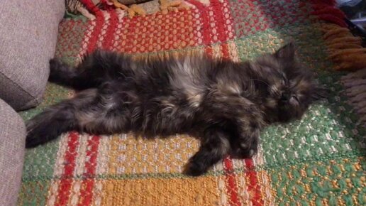 Маня лапки раскинула , лежит вверх пузиком, засыпает.
