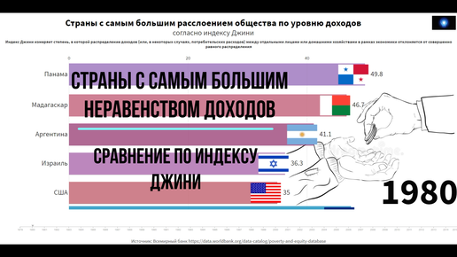 Страны-лидеры по неравенству доходов. Сравнение по Индексу Джини 1979-2015.