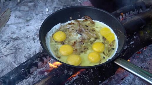 Яичница на костре, Паста Лингуине с томатным соусом на завтрак на рыбалке / UP FOOD
