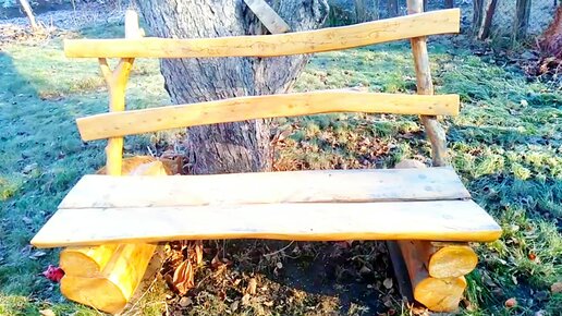 Скамейка из одного бревна. Как сделать просто