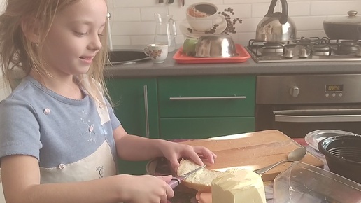 Когда ты маленькая папина помощница. Дочка делает мне бутерброд с маслом