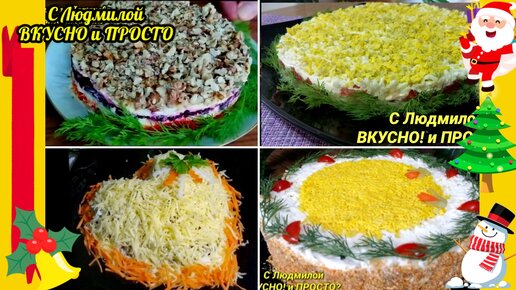 Четыре салата, которые я обязательно готовлю на новогодний стол: "Царский", "Маргарита" , "Сердце под снегом" и "Гурман"