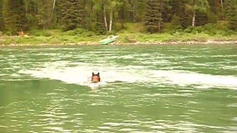 Как переправляют коней через Катунь.