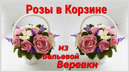 БУКЕТ из КОНФЕТ в Декоративной КОРЗИНКЕ из бельевой веревки, шпажек и картона.