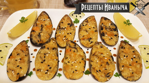 Мидии в раковинах запеченные в духовке с сыром и пикантным соусом