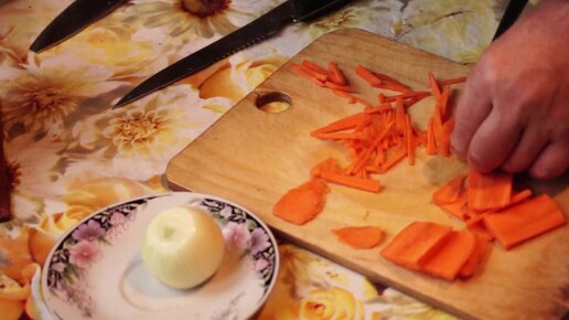 Режу морковь и лук для плова