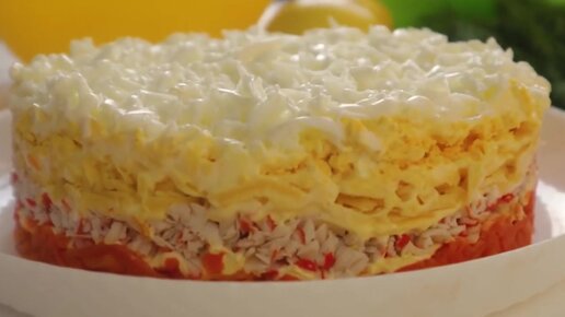 Простой праздничный крабовый салат. Очень нежный и всего из четырёх ингредиентов.