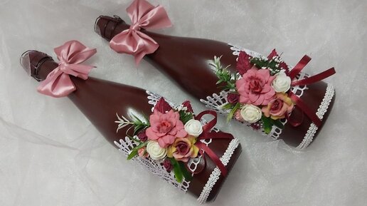Как украсить бутылки шампанского для свадьбы своими руками