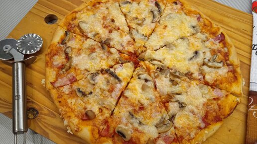 Пицца "Мясная с грибами". Хрустящее тесто: делюсь рецептом.