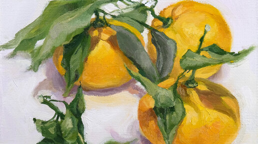 Рисование мандаринов с натуры маслом на холсте