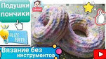 Пончик-подушка вязаная руками без инструментов из alize puffy. Мастер-класс