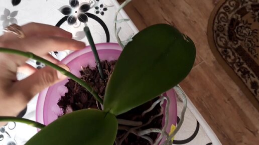 "Полив орхидеи, которая посажена в почвенный субсрат"