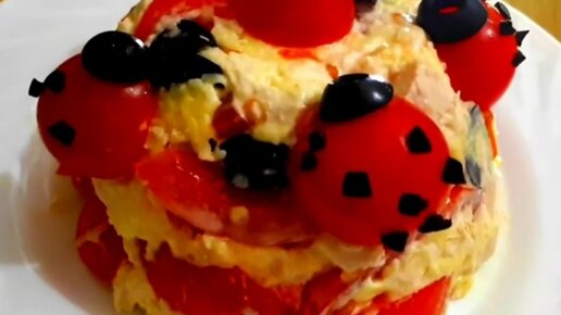 САЛАТ "БОЖЬЯ КОРОВКА"НЕЖНЫЙ И ОЧЕНЬ ВКУСНЫЙ