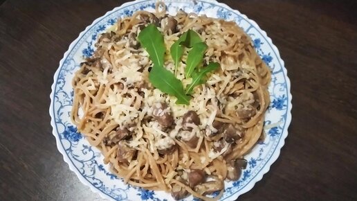 Паста с куриными сердечками, грибами в сливочном соусе - вкусный ужин