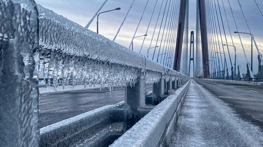 Пилоны Русского моста во Владивостоке очистят после ледяного дождя
