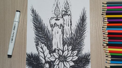 Новогодние свечи рисунок. Как нарисовать. Рисунок для срисовки