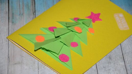 Новогодняя открытка с объёмной ёлочкой. Можно использовать идею для аппликации