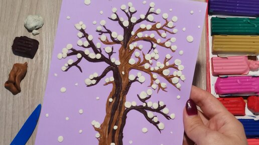 Как слепить зимнее дерево из пластилина. Поделки для детей. Пластилинография